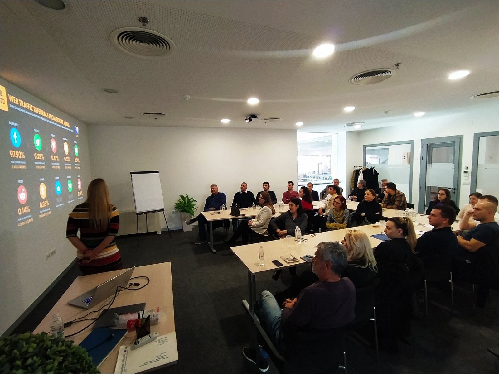 ZAVRŠENA RADIONICA „Digitalni Marketing“ Digitalni marketing, naziv je Edukacije/Radionice u organizaciji Obrtničke komore Federacije Bosne Hercegovine, koja je održana u „Intera Tehnološkom parku“ u Mostaru. Radionica je okupila preko 30 obrtnika, djelatnika u obrtništvu, te osoba koje namjeravaju otvoriti obrt. Predavačica je bila Ivona Jurilj voditeljica regionalne digitalne agencije Degordian d.o.o. ureda u Bosni i Hercegovini gdje vodi tim od 25 osoba. Posljednjih devet godina svakodnevno se bavi projektima upravljanja i procesima izrade strategije i sadržaja te aplikacija za velike klijente poput Agrokor Grupe, Mepas, Lactalis, DM Drogerie Markt trgovine i preko 30 klijenata iz različitih oblasti Cilj i očekivani rezultat edukacije/Radionice je bio da su polaznici pripremljeni s osnovnim znanjima potrebnim za vođenje društvenih mreža. Postizanje uspjeha na društvenim mrežama i digitalnim komunikacijskim kanalima s detaljno osmišljenim sadržajem i planiranim te pomno osmišljenim objavama Obrtnička komora Federacije Bosne i Hercegovine u suradnji s kantonalnim/županijskim obrtničkim komorama duži niz godina poduzima razne aktivnosti koje za cilj imaju jačanje konkurentnosi obrtnika u poslovnom okruženju i uspostavljanje lakšeg i kvalitetnijeg kontakta i suradnje s kijentima. Edukacija obrtnika i djelatnika obrtničkog sustava od ključnih je važnosti za uspjeh obrtništva u FBiH, zbog čega će Komora i dalje raditi na organizaciji radionica, edukacija i seminara za obrtnike.